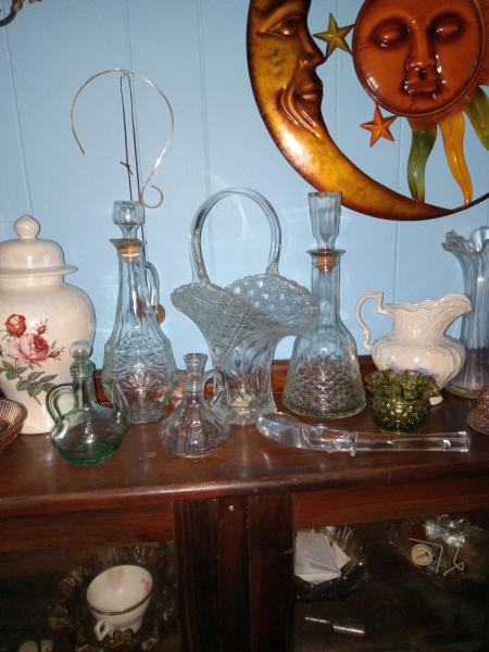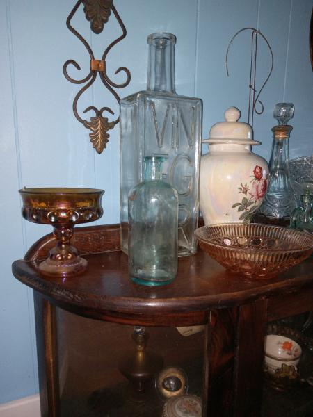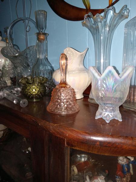 | Old milk container, old vinegar decanters, hobnail Fenton large and small. A variety of stuff. Look close at the picture. U like a piece call I'll sale.. priced accordingly. Also several piece of carnival glass. Cheap. 270-243-3026. |