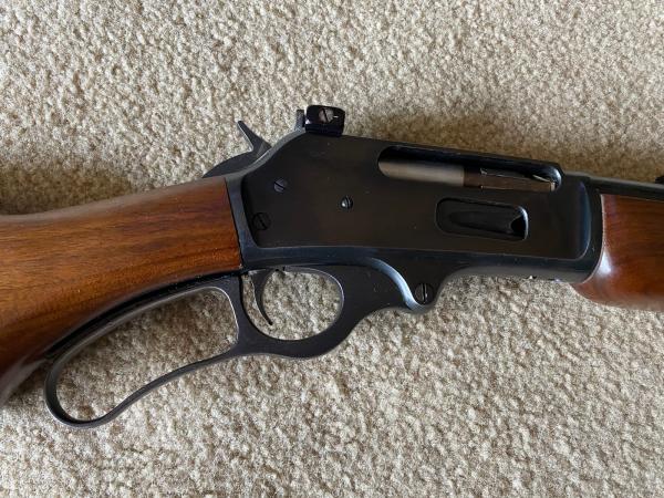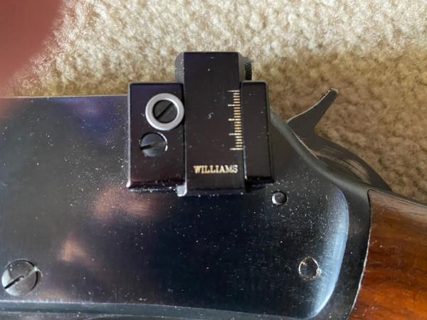 Holy Grail for a Marlin 336 SC (sporting carbine). 30-30 SN: H298xx the H is for the year 1951. Has a Waffle Top that HAS NOT been tapped for a scope. Original! JM marked barrel (original Marlin Production before Remington took over Marlin) Big plus for collectors. It has a Pre-Lock safety, Bullseye on the Walnut stock is still in place. Stands for “Walnut Stock” not a place to screw in a sling mount! Solid Walnut Wood is excellent! Has the optional Vintage Williams FP 36 (fool proof) peep site + $125.00. Finish near MINT, great wood. Overall NRA Excellent+ $1,500.00 CASH! I would consider trades for High End Handguns, WW2 firearms but cash is king! You will not find a nicer Marlin JM 1951 anywhere!!! I have had this for YEARS!