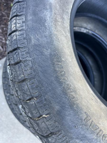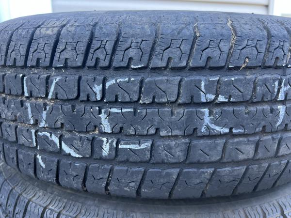 | I have four older 205/75/15 trailer tires with dry rot. Three were holding air but one had a slow leak. The leak may have been the valve stem. These would make good spares, not for full time use. Price is $25 for all four. Call/text 270-564-0235. I live in Paducah, near Lone Oak. God bless! |