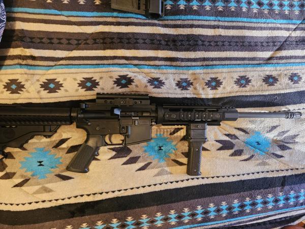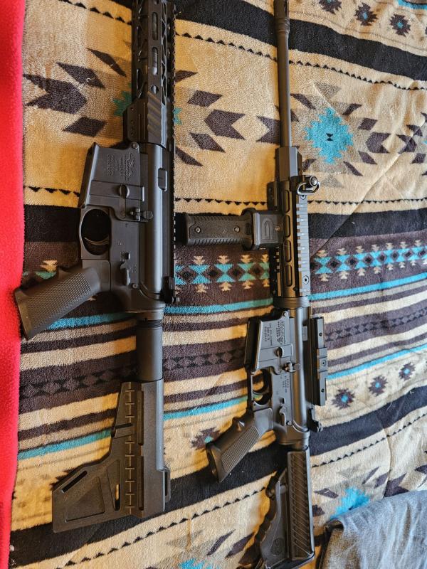 | Anderson AR-15s one rifle, one pistol selling from an estate. Look to be unfired. 900 pair or 525 rifle, 500 pistol each, the rifle has a pop out knife grip |
