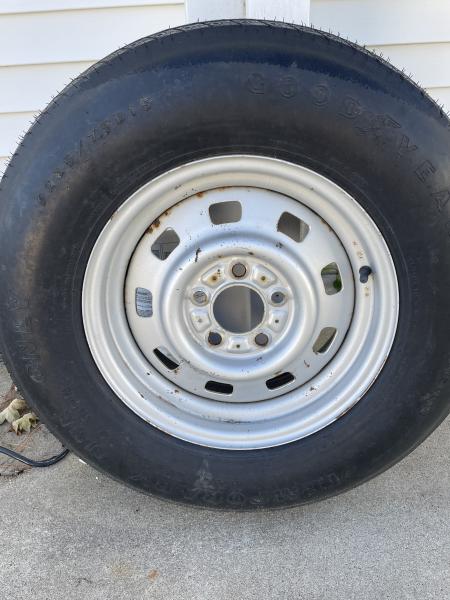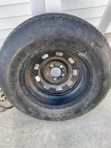 | For Sale Wheel and Tire Tire size is 225/75/15 Brand new but some signs of dry rot. Wheel is 5 x 4.5. Was on the back of a 2005 Jeep TJ. $50.00 Call or text (text preferred) 618-518-25o3 |