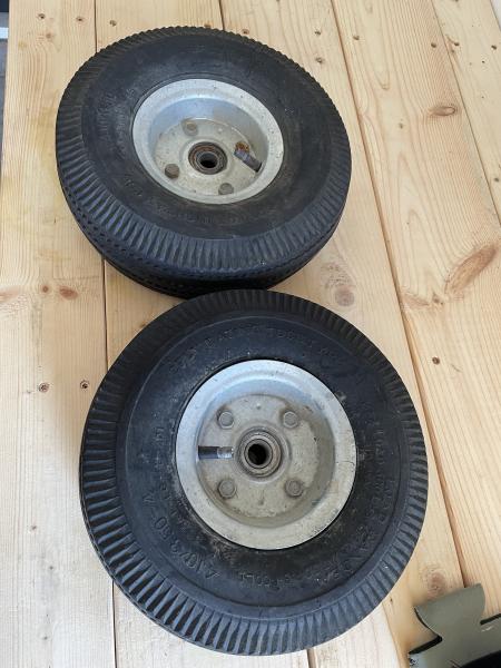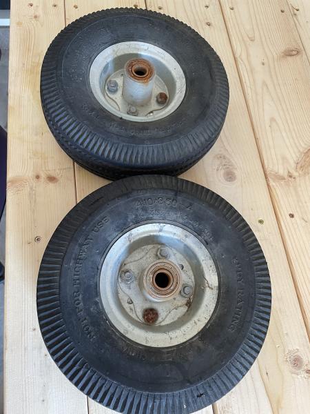 | For Sale A pair of wheels and tires for a standard dolly. Will hold air for a little bit, but could use new tubes. $20.00 Call or text (text preferred) 618-518-25o3 |