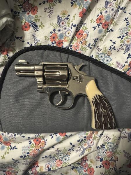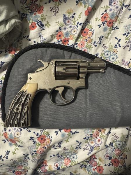 | Very nice older smith and Wesson revolver. These were made from 1941-1945. This gun has been refinished at some point and is nickel plated. I believe it shoots .38 special. It could either be a .38 special or .38 smith and Wesson. I’m asking 800. Not interested in trades. Please call or text 270-983-1468 |