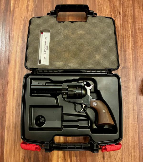 | Ruger New Model Blackhawk in .357 Magnum / .38 Special, Adjustable Sights, OEM Walnut Grips w/ Ruger Medallions, 4.62" Barrel, Factory Box, Manual, and all paperwork. Condition: Used, Like New. Fired less than 50 rounds. Only selling due to medical expenses. Ruger Model Specifications: https://ruger.com/products/newModelBlackhawkBlued/specSheets/0306.html Please Call or Text 270-210-5698 if interested. Thank you. |