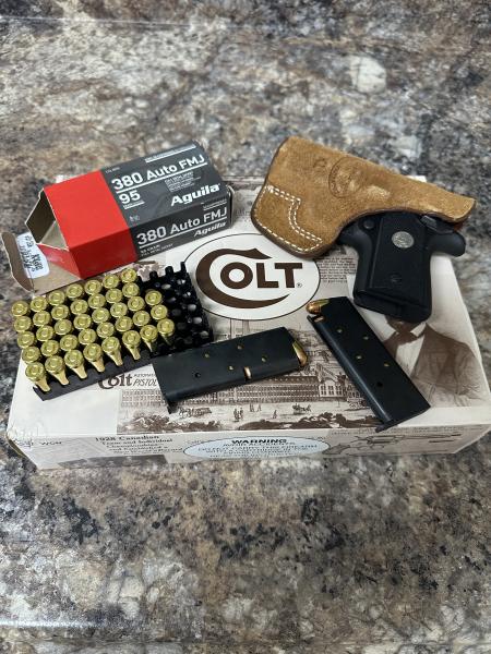 | 1992 Colt Mustang In Box with papers Leather pocket holster included 50 rounds .380 2 Magazines Call/Text (Two Seven Zero)-293-Nine Three Nine Four |