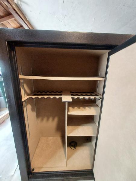 | Firepoof 36 gun 40x60x24. It's bolted to shipping pallet from factory that makes the overall height 66" tall. 600 pounds. Auxiliary plug inside for a charger or dehumidifier. Asking $700 If you have any questions call or text 2705592411. |