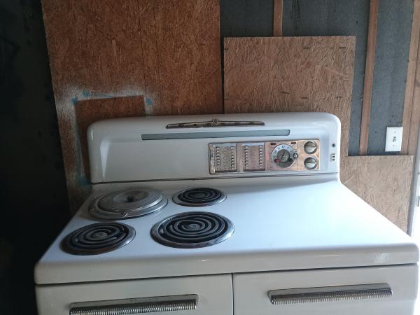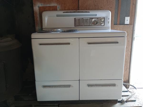 | Looking for a unique piece for your kitchen? This vintage 1949 Gibson "Ups-A-Daisy" electric range is a true classic. **Features include:** * Four surface units, with one "deep well cooker" * Two "GIANT" units * "Super-Speed" cooking * Two ovens, A perfect blend of vintage style and functional design, this Gibson stove would make a great conversation piece for a retro kitchen or a collector. $285 obo |