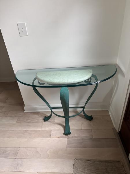 | Thomasville accent table. Removable glass top. About 3/4 inch thick, heavy. Excellent used condition. |