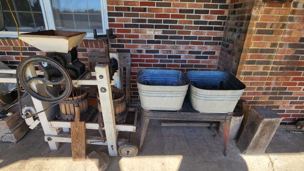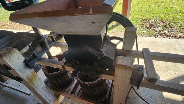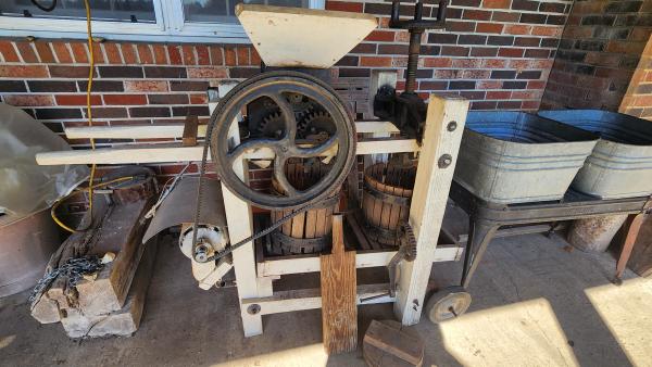 | Vintage apple cider grinder/press and square tubes with stand. Has electric motor added around 2001, easily removed if not desired. Ready to use or would make a great restoration project. Call or text for more information.731-446-2504 8am-7pm $1000obo Thanks for looking! |