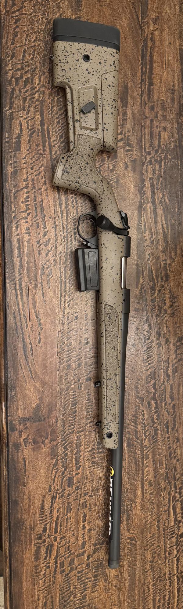 | For sale Bergara B-14 rifle in 308 HMR Molded with mini-chassis 5-round AICS detachable magazine Adjustable buttstock 20” barrel Threaded 5/8-24 Graphite Black Cerakote factory finish Rifle is in excellent condition $1000.00 Call or text 270-519-3637 |