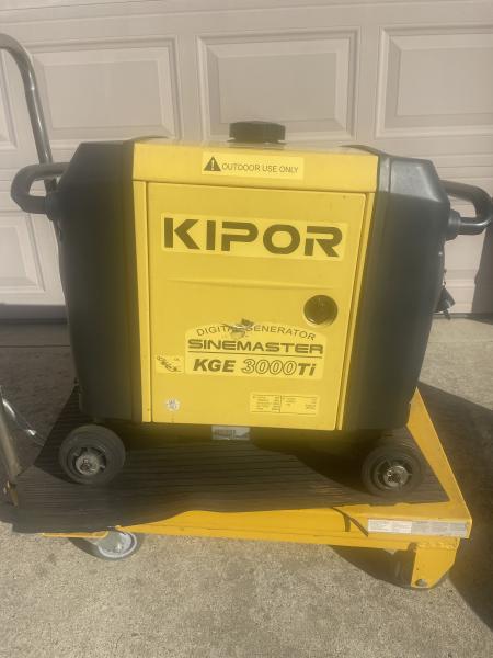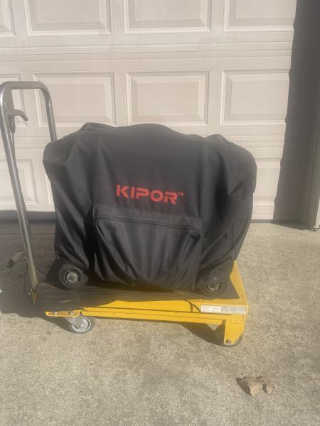 Kipor 3000 KV generator with wheel kit and lift table. An extended run time remote tank included. Generator user manual and cover included