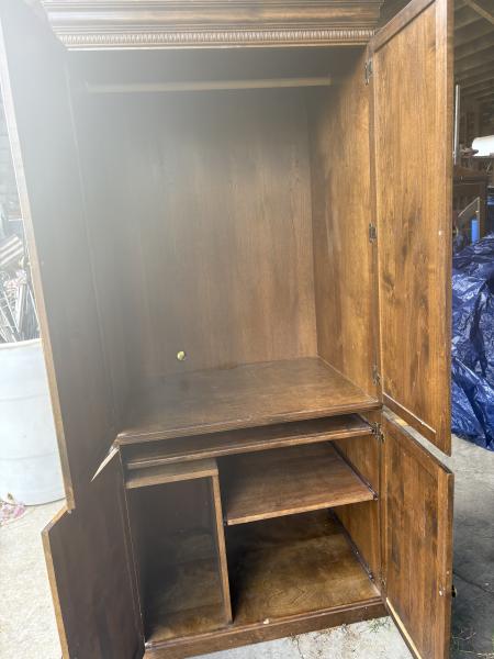 | I have a nice solid wood cabinet it’s 75” tall I used it for blankets and towels it’s in great condition very heavy call or text 270-559-9808 |