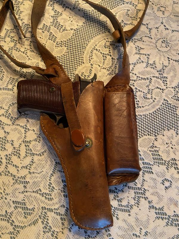 I also have 2 War military holsters that fit mid size pistols like a PPK, Makarov size. I would take $125.00 each.