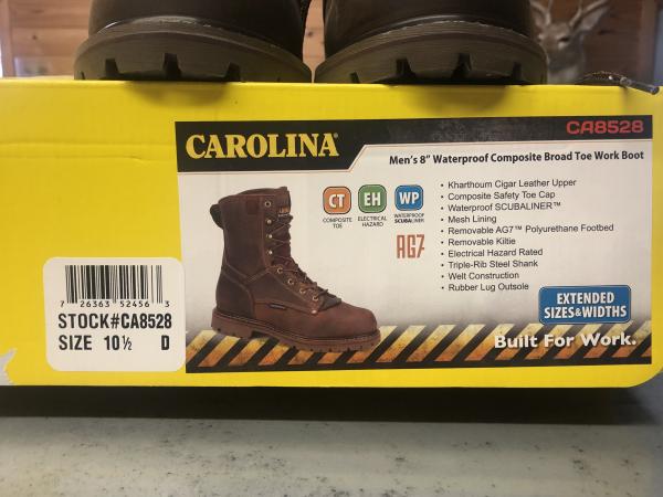 | Carolina Brand CA8528 Men's 8" Waterproof Composite Broad Toe Work Boots Brand New, Never Worn - you can break them in to your feet. Safety Rated, Electric Rated, Oil and Chemical Resistant, Lug Sole These are $230 everywhere, plus tax. And you probably have to wait for 10 months to get them like I did. Meanwhile, I moved to a different job and don't need them. I'll take $175, and no tax. I can meet up about anywhere in Paducah, Mayfield, Fulton areas. |