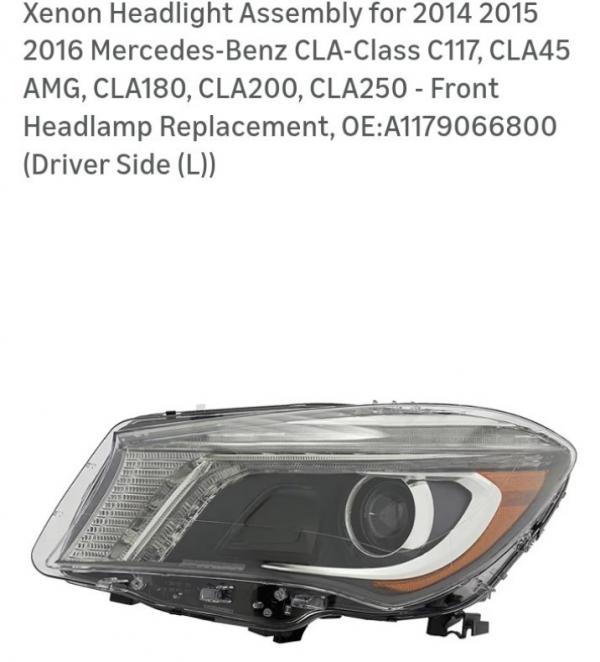 | 2014 Mercedes Benz cla 250 left driver side headlight assembly, needs the light bulb and the balast. |