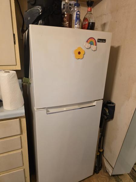 | Magic chef fridge works great will clean out pics show it works measures 60hx24wx26d $100.00 |