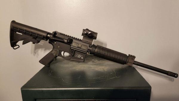 | I have new S&W MP AR 5.56 with sig sauer red dot, green laser and over 100 rounds of 5.56 ammo. |