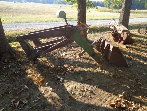 | JD "48" Front Loader - Fits 3020, 4020, probably other John Deeres. Not bent, welded or plated. Bucket is reinforced and has a new edge. All pins and brackets included. Easy mount. $1,250.00 618-658-2106 6093 6094 6095 6096 |