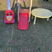 little tyke slide and car and a table