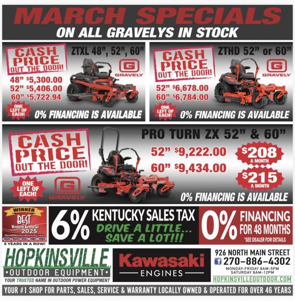 MARCH SPECIAL HOUSE PRICING ON ALL GRAVELY ZTXL, ZTHD AND PROTURN ZX THAT ARE IN STOCK!!! BEST DEALS OF THE YEAR