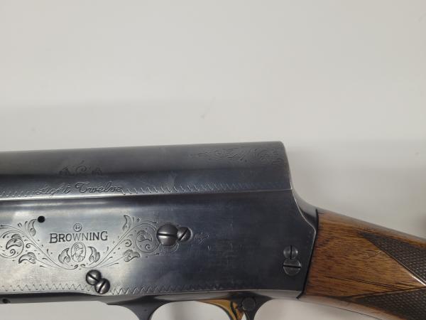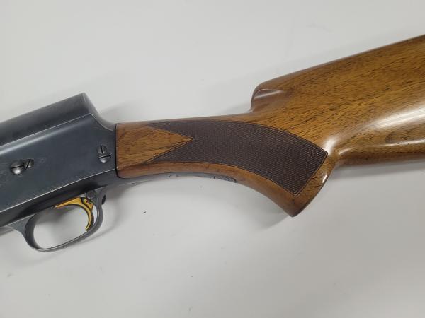 Barrel has been cut down (pictured). 1969 Browning Begium Auto-5 Light Twelve humpback semi auto shotgun 2 3/4" shell, gold plated trigger, flat knob stock, checkered forearm & stock. Barrel has been shortened to 22 5/8" (barrel should be 26", 28" or 30"). No chokes