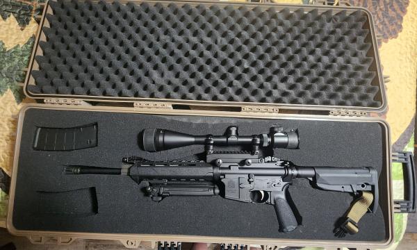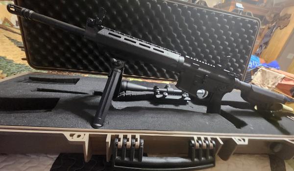 Greetings everyone. I have for sale one Springfield Armory Saint AR-15 5.56mm semi-automatic rifle in excellent shape. It comes with a MAGPUL bipod, 1 point over the should sling with quick-connect, picatinny rail mount that holds a very nice 8-32x50mm, IR BARSKA Excavator scope. It also has adjustable pop-up sights for those that can still see well enough to shoot without a scope and a collapsable stock. I am including 1-30 round magazine, and the very cool travel locking gun-case made by HQ Issue that is TSA compliant and water resistant. Sorry, buy your own ammo as I am keeping that. Text 270-727-2347 This rifle has only had less than 1 magazine shot down its barrel and hasn't been properly zeroed in yet. It was purchased new from FirstChoice Firearms out of Murray, Kentucky. $1200 obo. I do not want to sell it, but I am afraid I have no choice.
