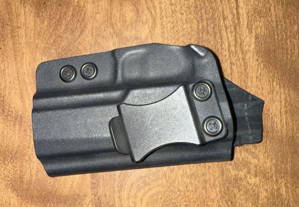 Up for sale is a nice Kydex IWB holster for compact and full size Glocks in the 9mm and .40 calibers.  Holster has an adjustable belt clip to adjust the cant.  Holster has two screws to adjust the retention.  Please feel free to email, call or text with any questions.