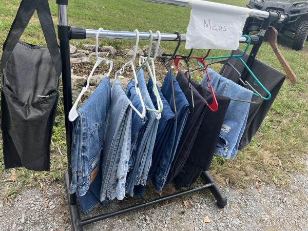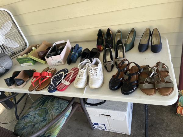 I have enough left over yardsale item for another yardsale I think there was about 6 tables with shoes, purses. Books Easter , clothes house hold item, mirror etc: first $-100 gets it will through in some hangers  it’s boxed and ready. Most of it I’m in Marion ky 270-883-0299