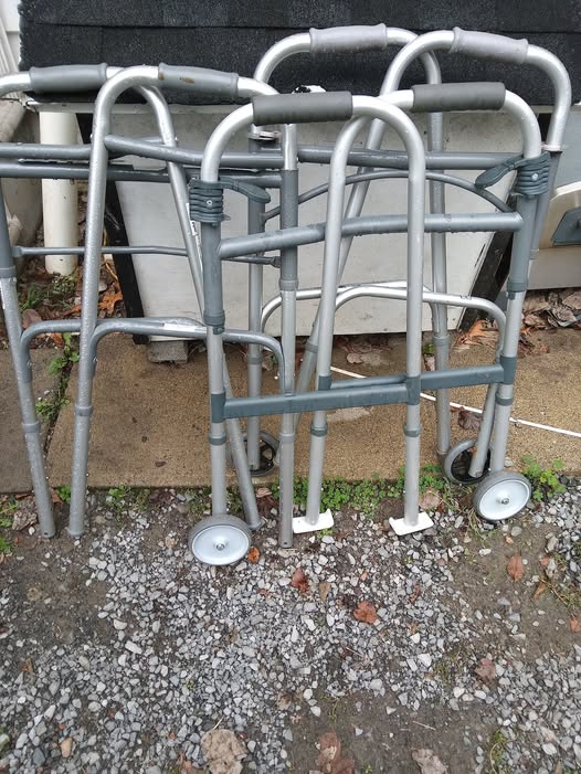 For sale are three walkers. Two have wheels and one is the kind that doesn't come with wheels. All fold inward for storage. I no longer need these. $5 each. Buy one or all.
