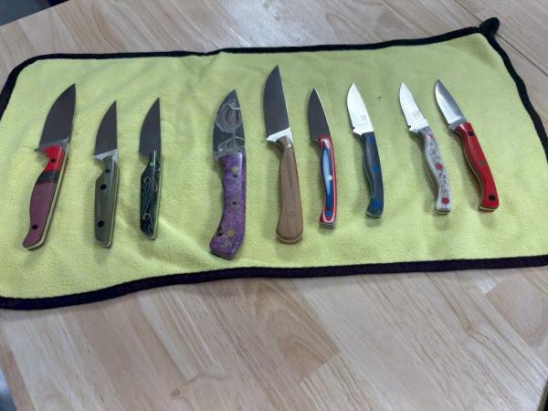 100% custom handmade knives made in Benton KY. These are all my show blades and styles and with only two shows left this year, I need to reduce inventory. All come with fitted sheath and can be custom lasered if you like a logo or name applied. If you don't see what you need ask about a custom build.