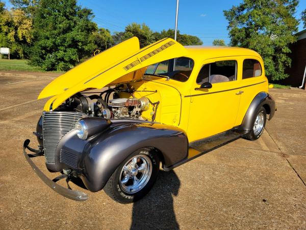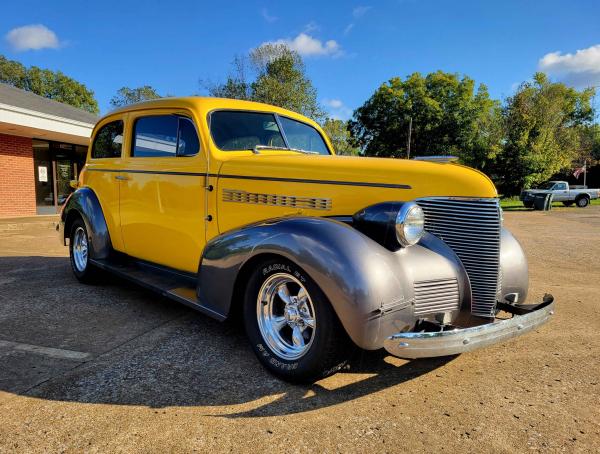 1939 Chevy Sedan Master. Solid and straight body. Nice interior. Power steering and brakes. Front disc. 10 bolt rear. 350/350 automatic. Runs out great and smooth. High-rise intake, Edelbrock carb. Aluminum radiator. Runs cool. The Vintage A/C just needs finished. It's all there with paperwork. Nice wheels and tires. Just hit the key and cruise. Clear title. Call me with any questions.