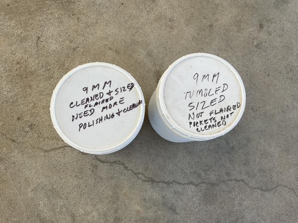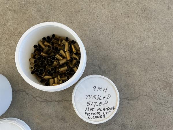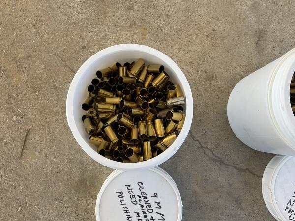 I HAVE 1000 PLUS ROUNDS OF 9MM CASINGS. THESE ARE IN VARIOUS STAGES OF POLISHING,  BUT ALL IN FANTASTIC AND READY TO LOAD CONDITION. THEY ARE DE-PRIMED AND YOU CAN SEE THE DESCRIPTION ONTHE TOP OF THE CAN. 560 IN ONE CAN AND 450 IN THE OTHER. I HAVE MANY MORE ROUNDS OF VARIOUS CALIBERS . TEXT ONLY TO 270-562-2714