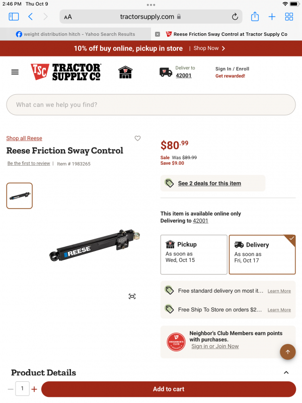 Two Reese dual cam spring bars with chains for weight distribution system (no weight distribution hitch) and Reese sway control unit. Price is $100 for everything. Call/text me at 270-564-0235. I live in Paducah, near Lone Oak. God bless!