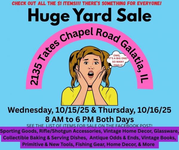 Big Yard Sale Wed 10/15 & Thur 10/16 in Southern IL