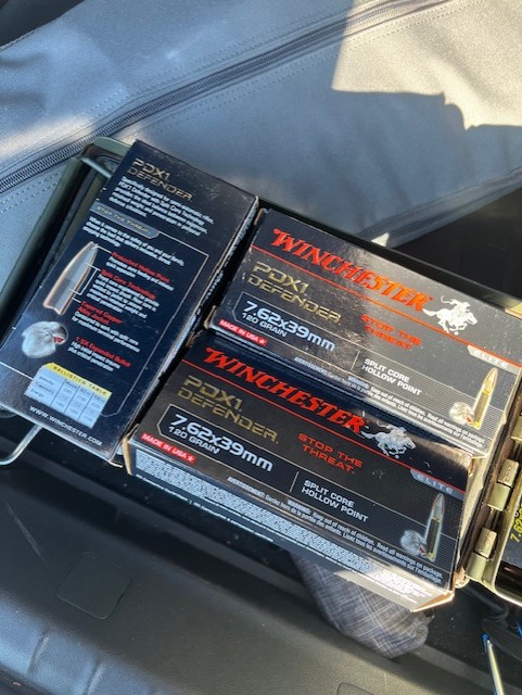 7.62 x 39 Ammunition. I have 480 rounds of 122 gr ammo. They are mostly Tulamo and Norinco. I priced them just under .39 cents per round for the 480 rounds. The total price includes 3 boxes (60 rounds)of Winchester 7.62 x 39 PDX1 Defender 120 gr soft core rounds, 540 rounds total. I will sell the Defender rounds separately if you want. $185 for the bulk and $55 for the Defender rounds.