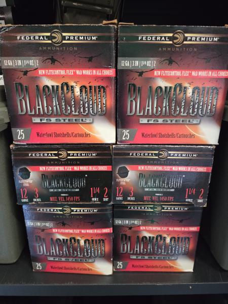 Six(6) boxes ofFederal Black Cloud 12 gauge 3" 1ΒΌ #2 shot