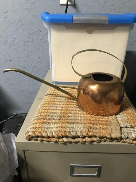 This is a small copper and brass vintage watering can. I found this in cleaning out an old garage. It is in very good condition.  This item is listed in Benton. Text questions to      270-210-8202 or leave a voice mail.