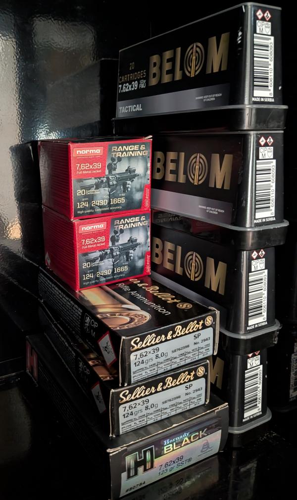 180 rounds of ammo, 80 Belom FMJ, 40 Norma FMJ, 40 S&B soft points, 20 Hornady Black SST.