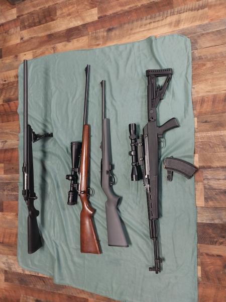 1ST--CLASSIC REMINGTON 722 ,24 INCH BARREL,222 REM .CABELAS 6X18X50 PRO SCOPE,MADE FROM 1948-1962,THIS GUN IS 1951,VERY NICE CONDITION -700.00      2ND-SAVAGE 112-223 REM 24 INCH HEAVY BARREL WITH BI-POD NAIL DRIVER--500.00  3RD--REMINGTON 597 22LR LIKE NEW -200.00    4TH--CHINA SKS HOGUE STOCK,DETACH MAG ,NIKON SCOPE NICE 600.00      5TH--NICE REMINGTON 241 {SPEEDMASTER } BOTTOM EJECT,LOADS THRU BUTTSTOCK PORIOD CORRECT MOUNT SHOOTS GREAT--600.00  TEXT IS BEST -CALL LEAVE VOICEMAIL 270-207-1498  TRADES WELCOME  PICS COMING