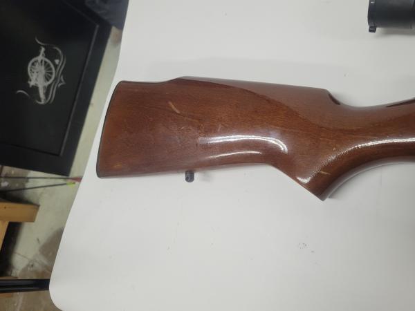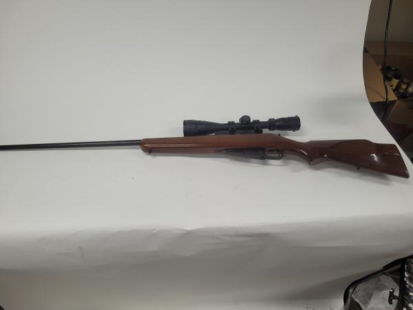 Mosin Nagant M91/30 Russian rifle 7.62x54mm. This rifle is highly sporterized. The only thing that is original is the barrel, receiver and trigger assembly. The stock has been replaced with a different wood stock, and the bolt has been replaced with a stainless-steel bolt. It has a center point scope. The serial number that we used is the one located where the barrel meets the receiver, it is the one under the year. There is a different number on the receiver next to VT, and also a different number on the trigger assemby