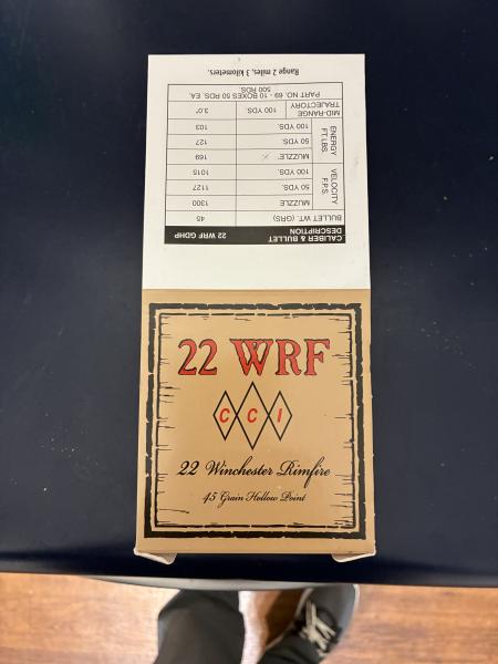 22WRF Ammunition manufactured by CCI. For mote information call 270/ 519/2766