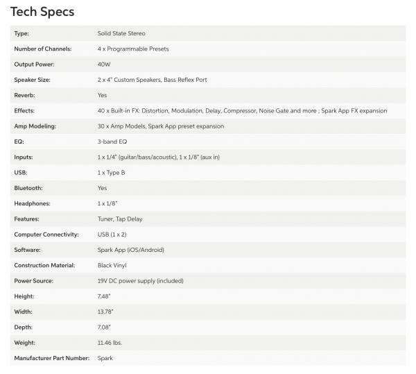 Positive Grid Spark 40 with extras, gig bag and Spark wireless foot controller. All works as should. Specifications in photos