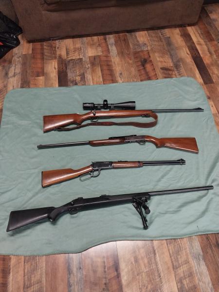 1ST-REMINGTON 722 IN 222 REM CAL.WOOD AND BLUED WITH CABELAS EURO-6X18X50 SCOPE,THE 722 IS SHORT ACTION VERSION OF THE 721 ,ONLY 117,751 PRODUCED FROM 1948-1962,26 INCH BARREL VERY ACCURATE --700.00 2ND--RARE ITHACA MODEL 72 SADDLEGUN IN 22 MAGNUM CAL,REAL NICE LEVER ACTION -600.00 3RD--REMINGTON MODEL 241 SPEEDMASTER BOTTOM EJECT LOADS THRU BUTTSTOCK,THIS IS THE ORIGINAL SPEEDMASTER BEFORE 552,SHOOTS GREAT -600.00 4TH--SAVAGE MODEL 112 IN 223 CAL WITH 26 INCH HEAVY BARREL WITH BI-POD--475.00 TRADES CONSIDERED TEXT -270-207-1498 I WILL RETURN TEXT IF U CALL LEAVE VOICEMAIL I DONT ANSWER UNKNOWN NUMBERS ON TRADES JUST LET ME KNOW WHAT YOU GOT IM NOT LOOKING FOR ANY ONE THING SPECIAL