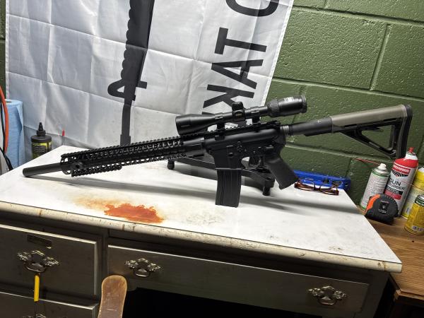 Anderson upper, lower, handguard has aero 18” 556 barrel. Rise wave drop in trigger, Nikon 3-9-40 scope. Very accurate rifle 850$ or trade text 270-625-3888
