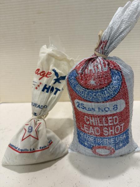 I offer for sale a bag of number 8 size shot that weighs 21 pounds.