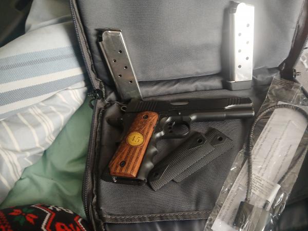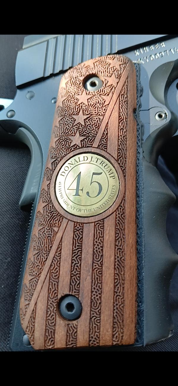 Mainly Looking to trade it off. It just sits around never getting carried. Just looking for something new. I've shot a couple mags through it. It fires beautifully. I just keep it around because it's a pretty little showpiece. Comes with kit bag, 2 mags(a 7rd and 8rd), gun lock, and original grips. Has after market grips on it and it feels like it has hogue underlay for the grips. Text 270-703-4732