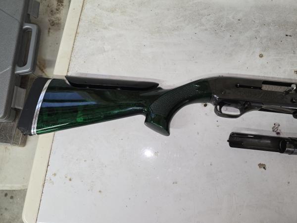 Winchester Super X model 1 trap shotgun. Has trap and skeet barrel. 26" and 28" Had new bolt buffer put in this spring.  Shoots good. Hydro dipped stock and forearm green. Gun is in good shape.  Asking $850.00