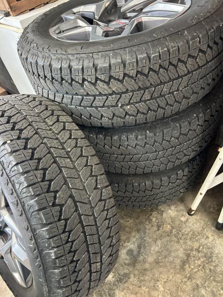 Set of 4 factory GMC Sierra wheels and Bridgestone tires 275/60/20, 3,000 miles, $950, call/text 270-752-0442