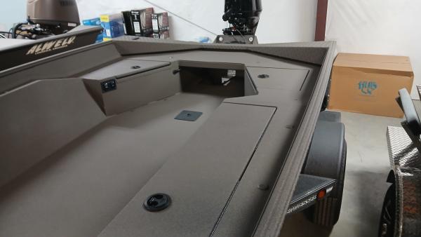 Brand New 2025 Alweld Invader with a Mercury 50ELHPT 4 Stroke sitting on a stout Tennessee Trailer. Hunt deck, trolling motor setup, 14 inch locking deck storage, extra seat bases, gun box, spud pole holders, non skid brown interior with Camo exterior, bilge pump.  This is a great all around package in the famous Alweld quality, built to last a life time!!