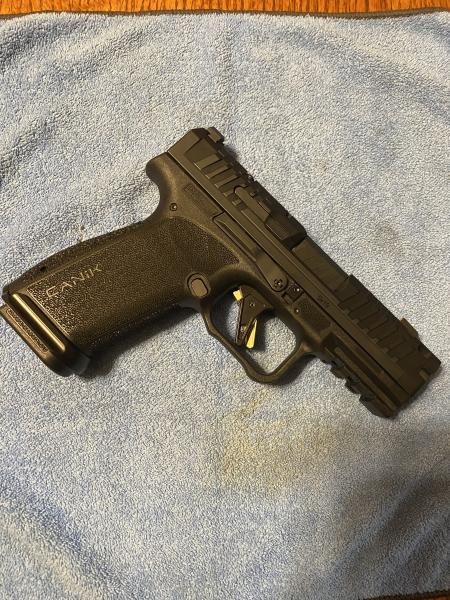 Like new in the box!  CANIK METE MC9 PRIME, Ported and Fluted Barrel, night sights, red dot ready, factory Mag well.  has been shot less than one full mag, 10-12 rounds, has (2) 17 round mags. Trades possible of equal value 9mm pistols.  Looking for Hellcat Pro, Shield X, FN Reflex XL, Sig P365 series.      Text 270-978-4703